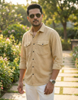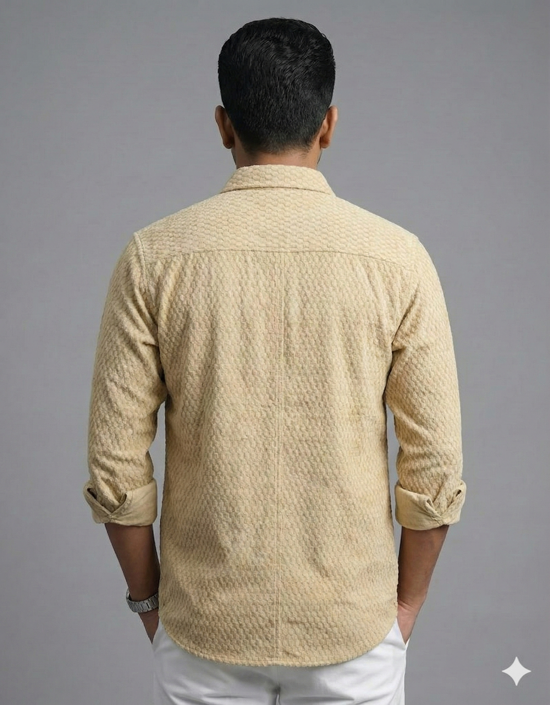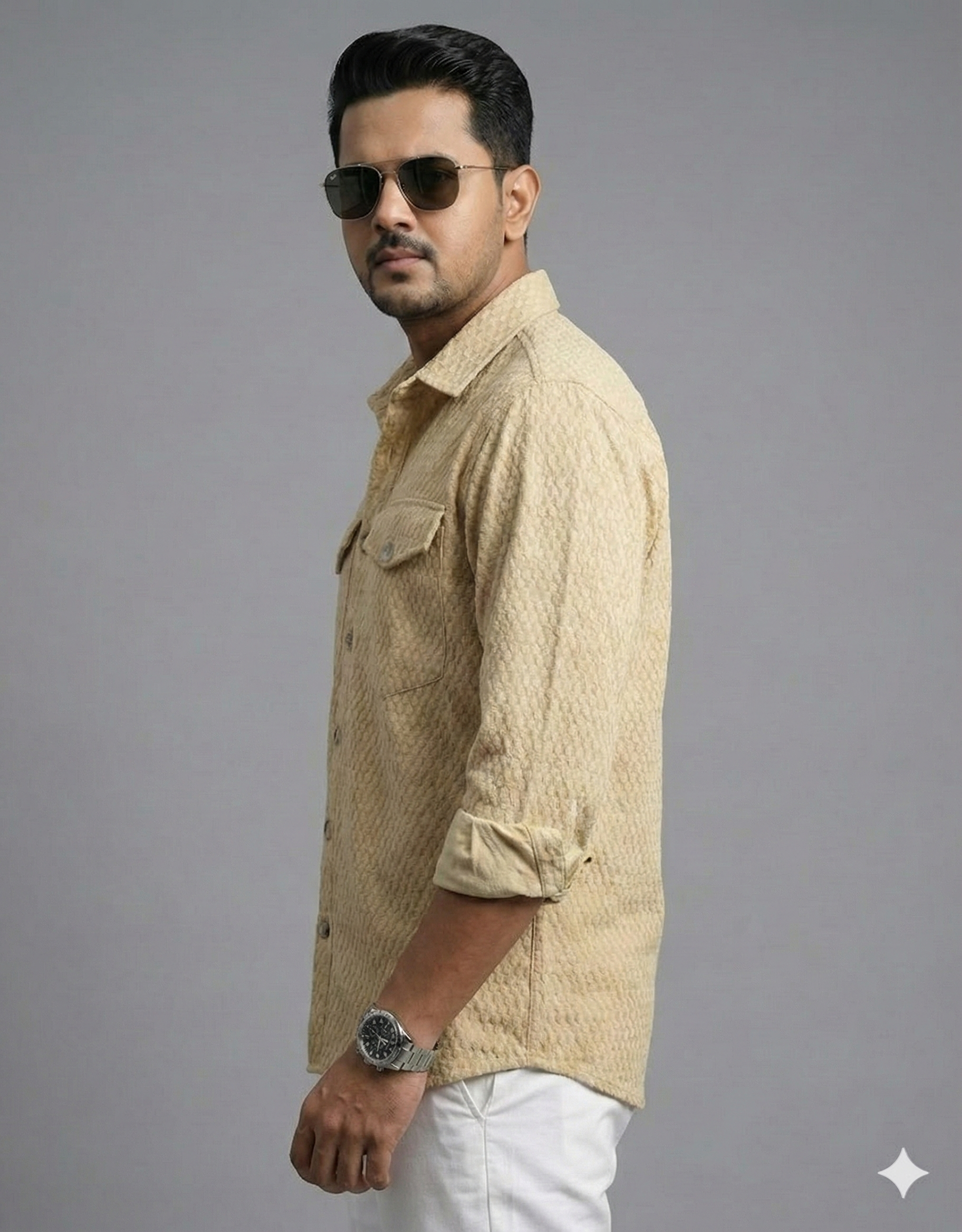 Men’s Premium Textured Light Grey Casual Shirt | Full Sleeve Button-Down with Dual Front Pockets | Soft Breathable Fabric | Stylish Modern Slim Fit Shirt for Daily & Party Wear