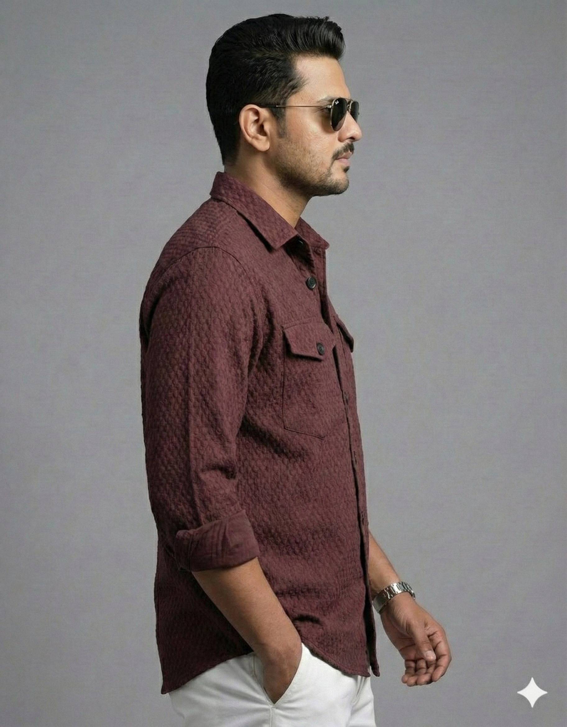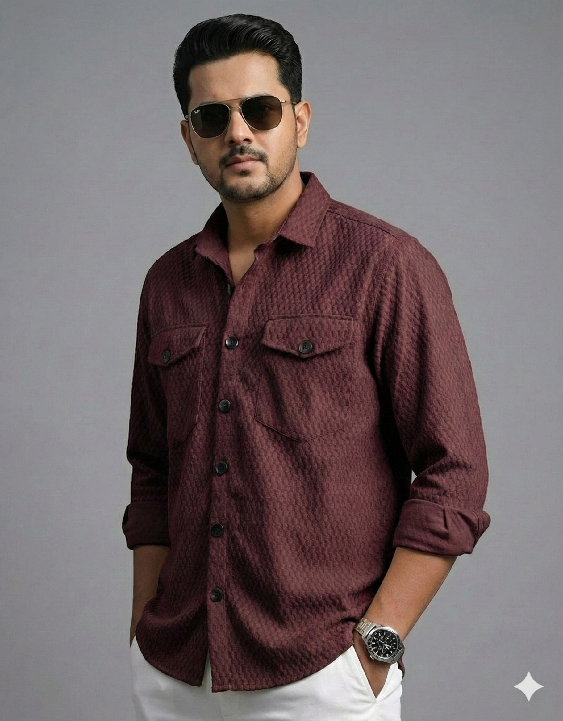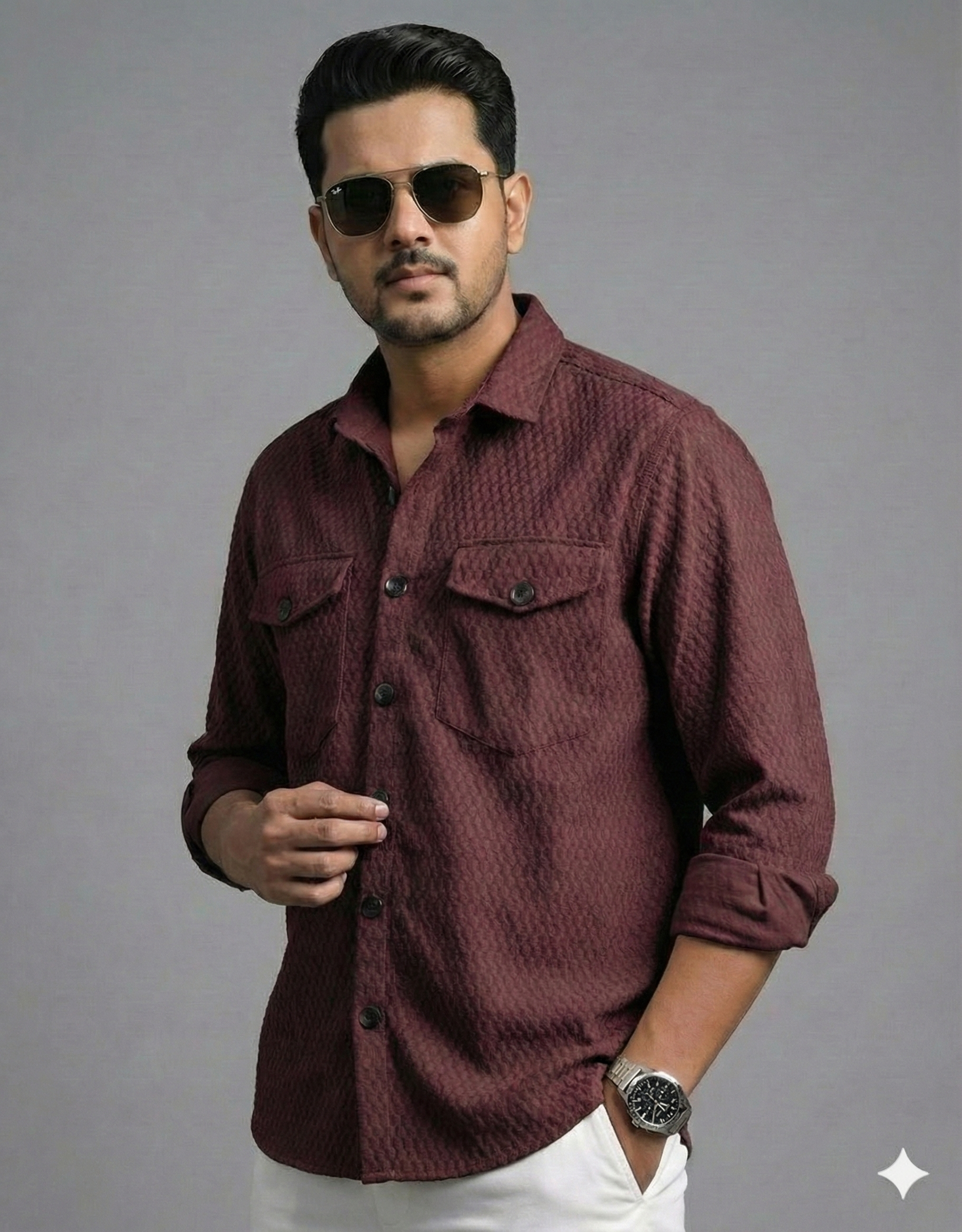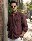 Men’s Premium Textured Light Grey Casual Shirt | Full Sleeve Button-Down with Dual Front Pockets | Soft Breathable Fabric | Stylish Modern Slim Fit Shirt for Daily & Party Wear